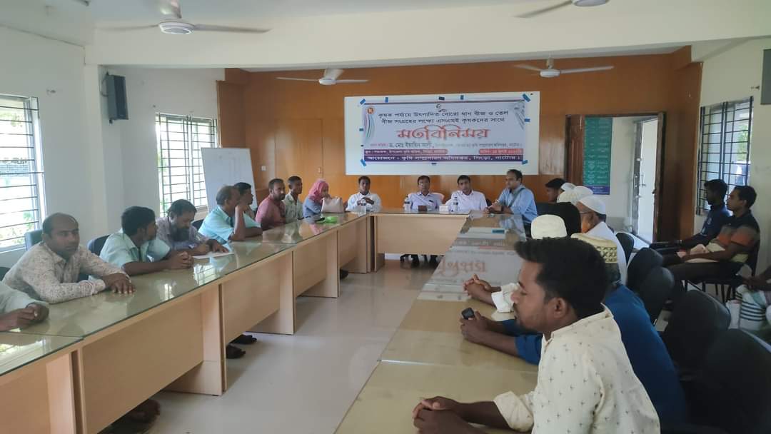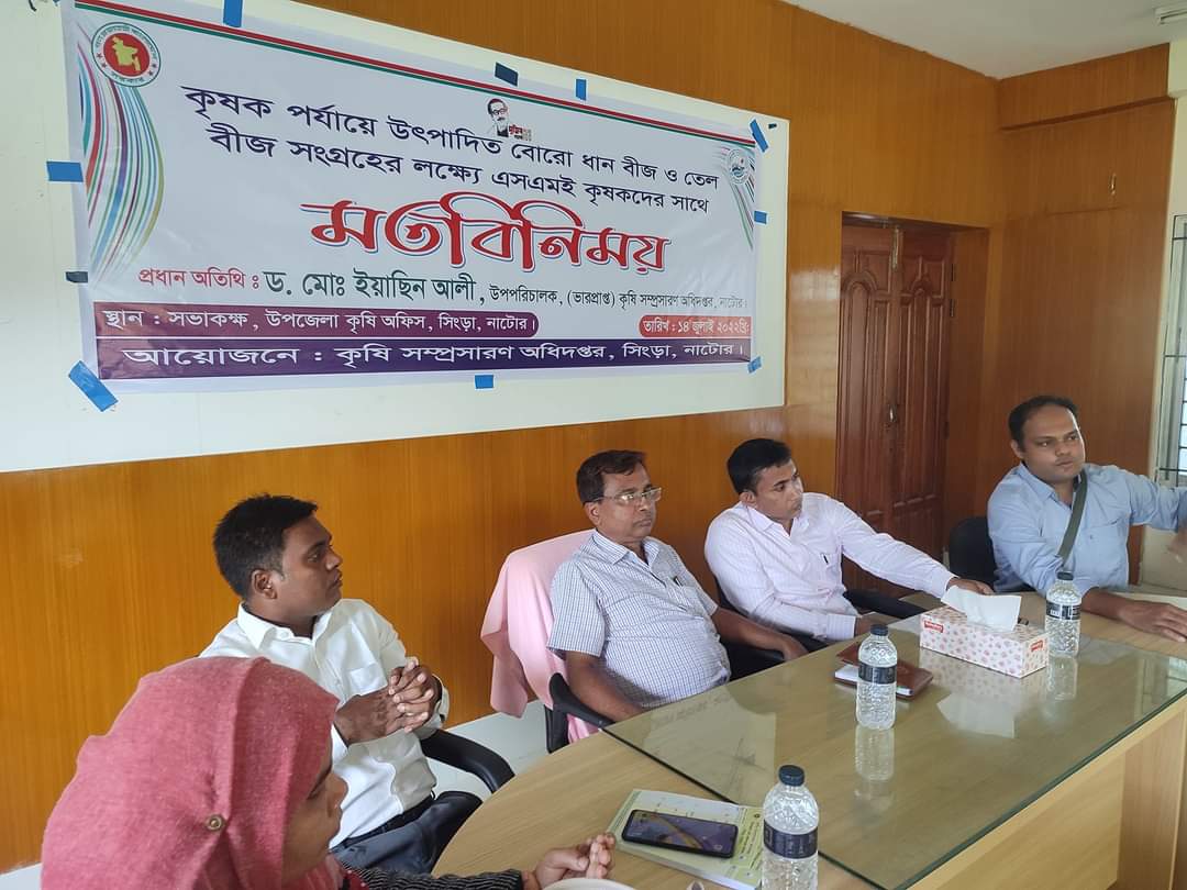 নাটোরের সিংড়ায় কৃষক পর্যায়ে উৎপাদিত বোরো ধানবীজ ও তেল বীজ সরকারিভাবে সংগ্রহের লক্ষ্যে এসএমই কৃষকদের সাথে মতবিনিময় সভা অনুষ্ঠিত হয়েছে।