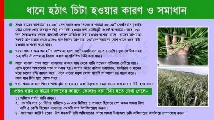 | ১০ | হঠাৎ বোরো ধানে চিটা হওয়ার কারন ও সমাধান। | | | ০৭-০৪-২০২১ | দেখুন |