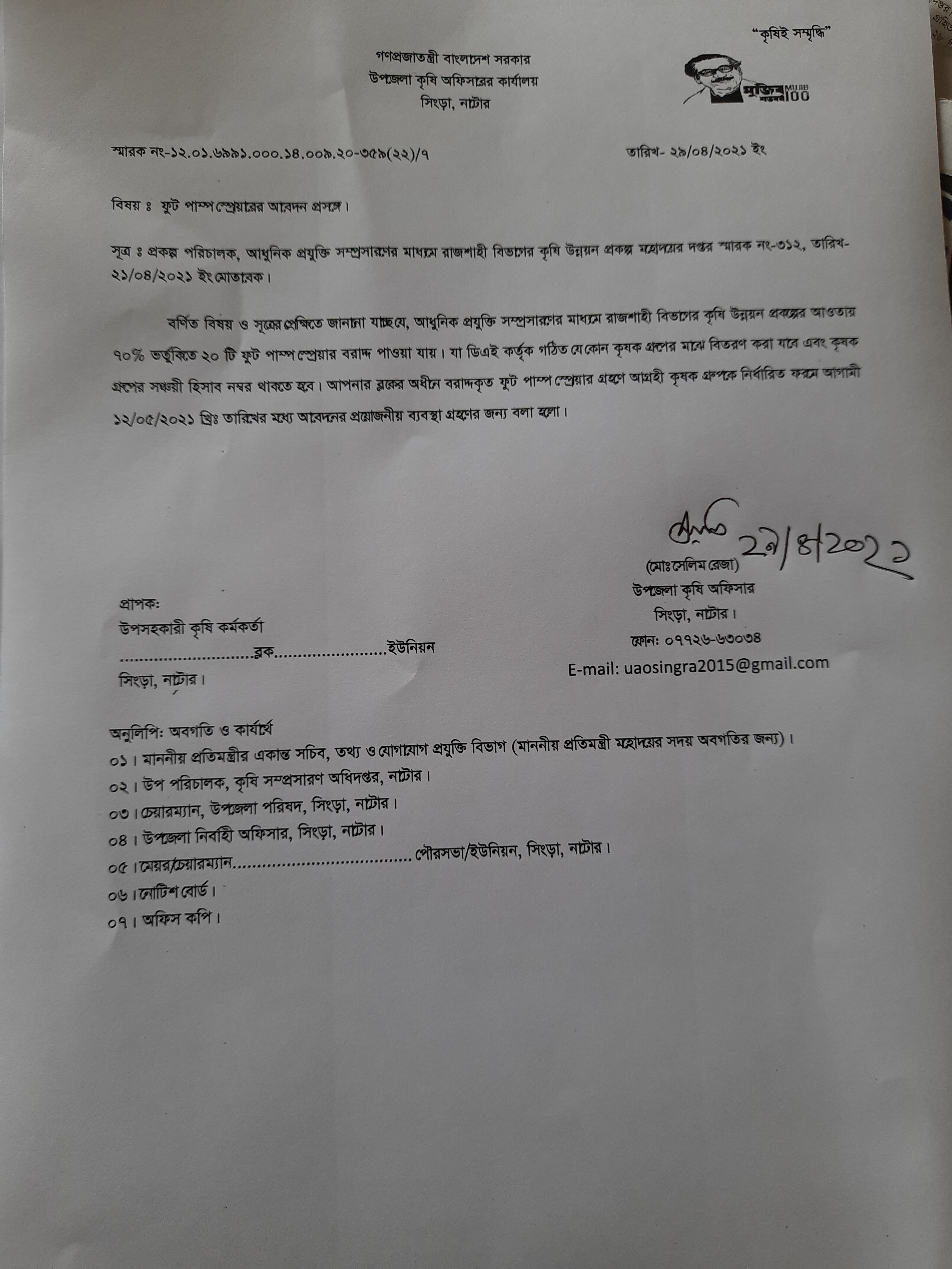 | ৯ | ফুট পাম্প স্প্রে মেশিনের আবেদন। | | | ০৫-০৫-২০২১ | দেখুন |