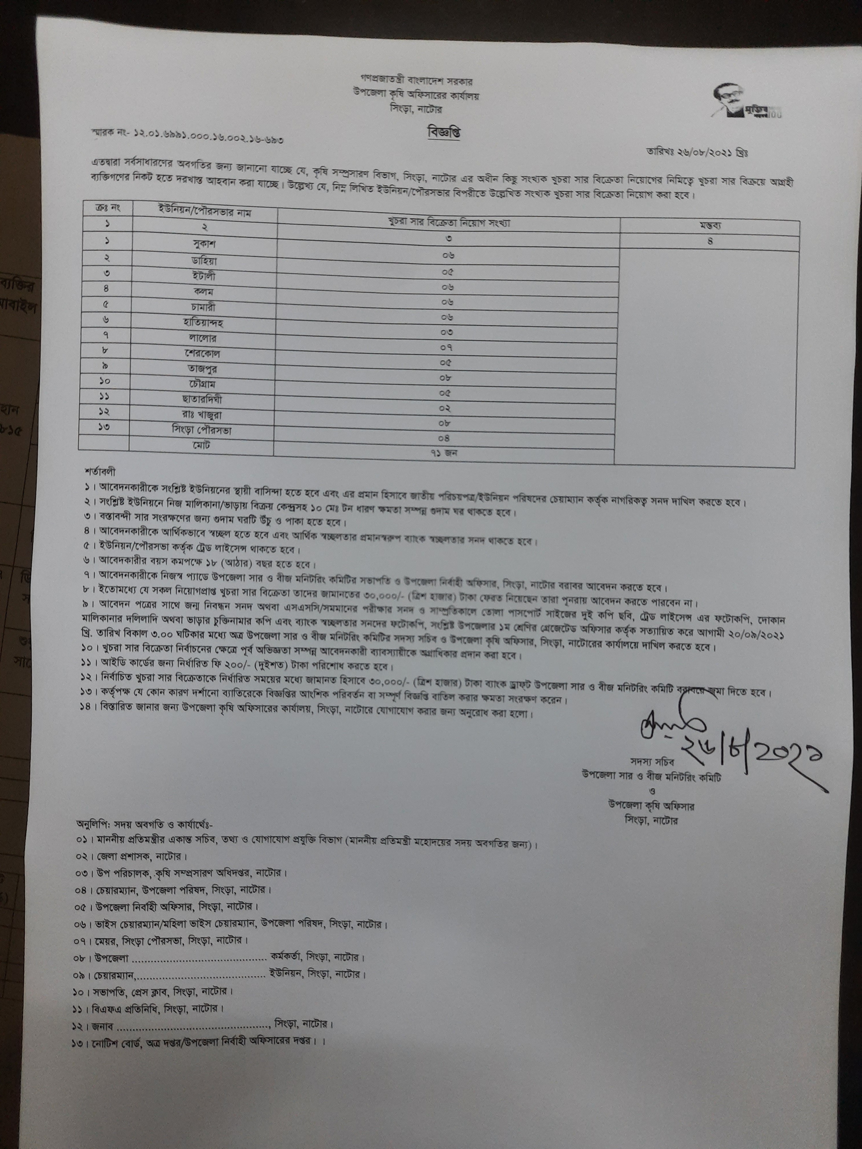| ৭ | খুচরা সার বিক্রেতা নিয়োগ। | | | ২৬-০৮-২০২১ | দেখুন |