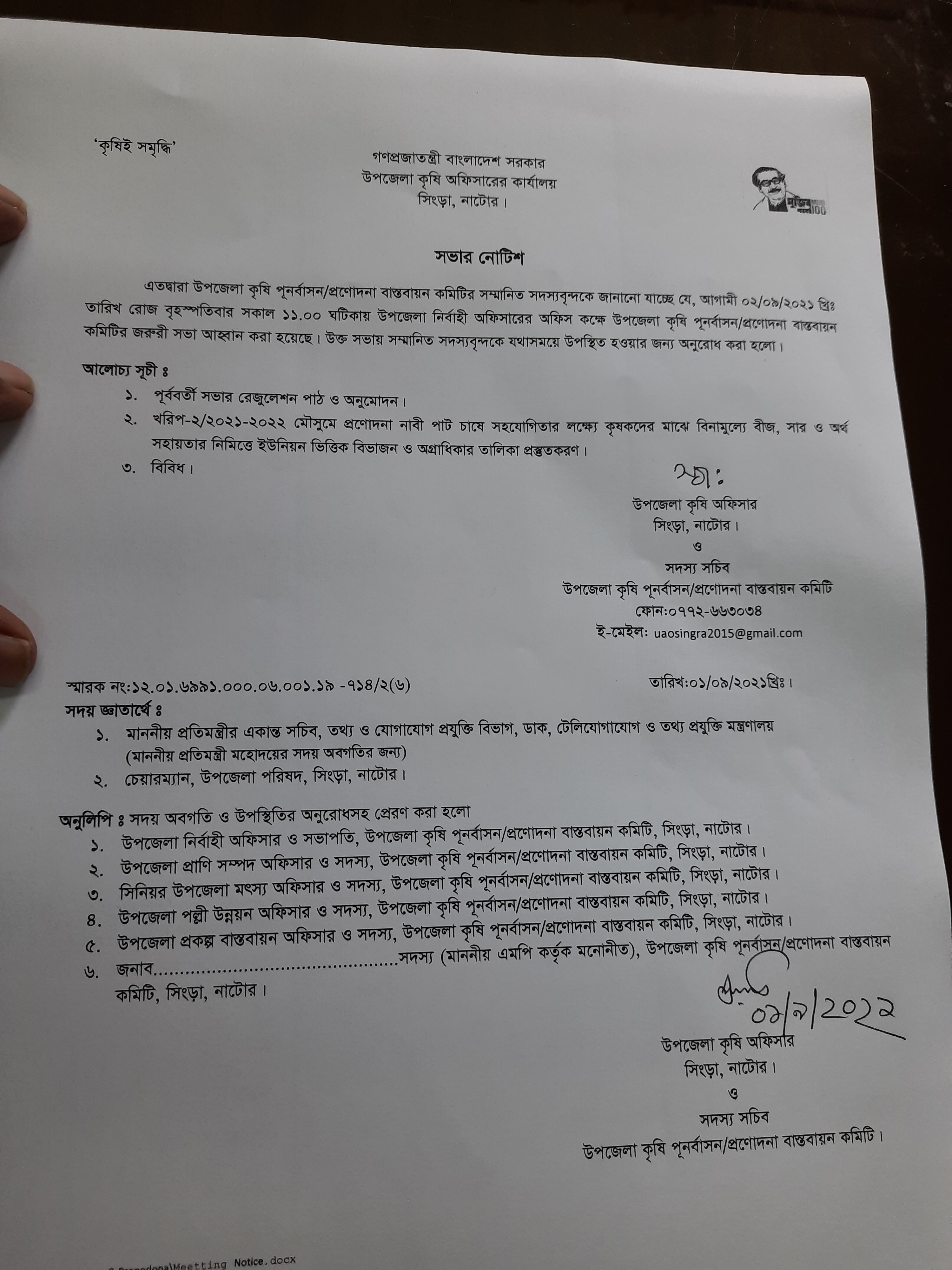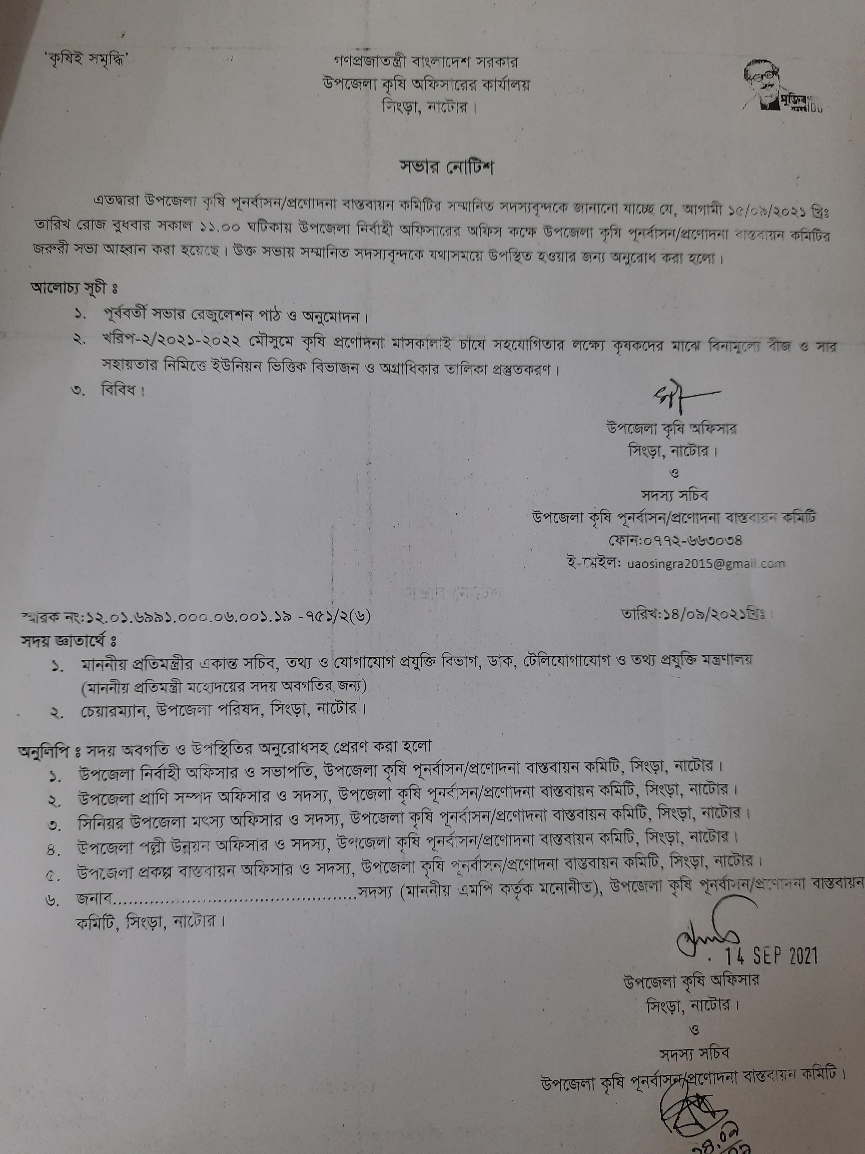 | ৩ | কৃষি যন্ত্রপাতি ভর্তুকি সংক্রান্ত সভা। | | | ১৪-০৯-২০২১ | দেখুন |