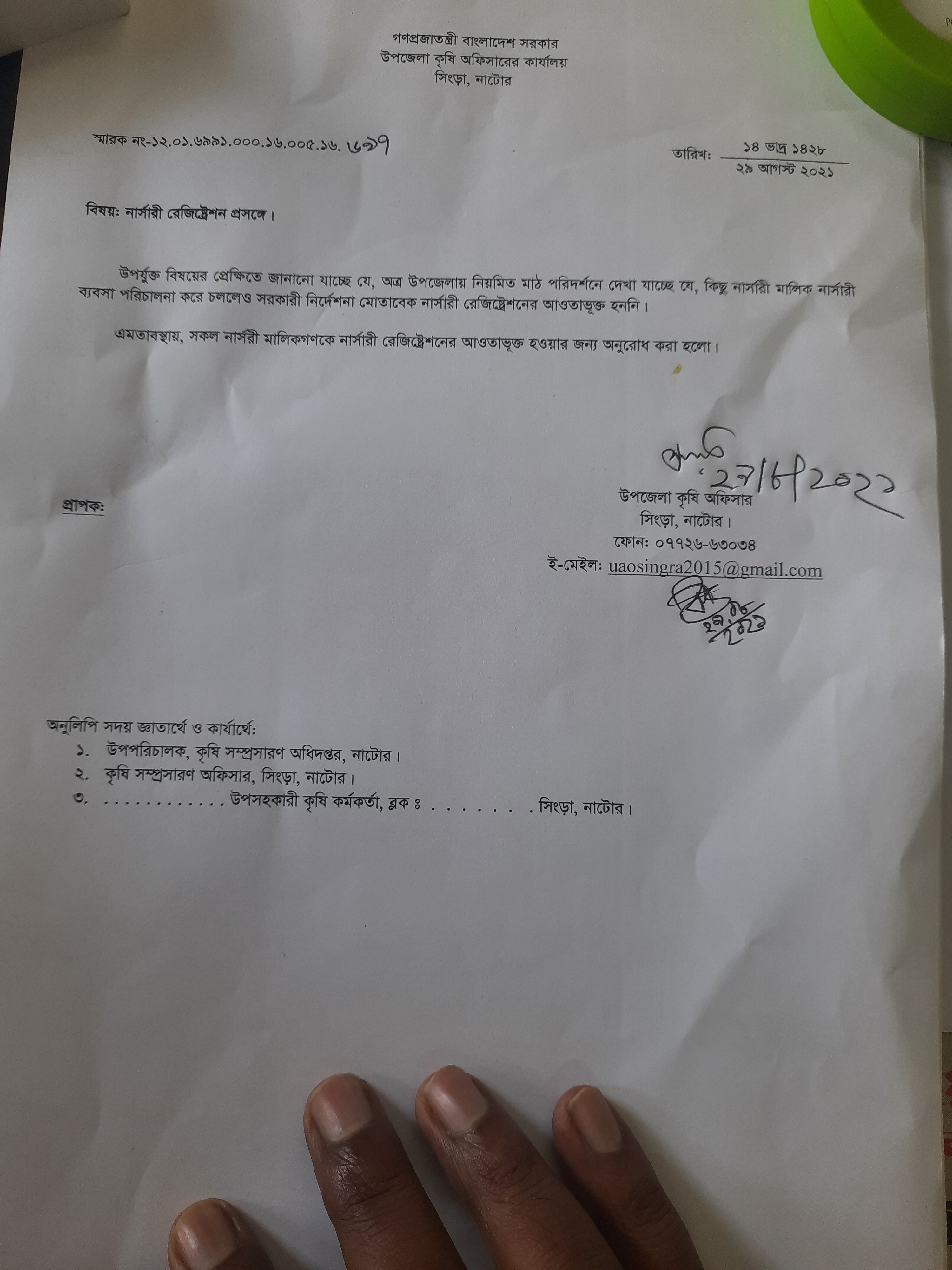 | ৬ | নার্সারী রেজিস্ট্রেশনের বিজ্ঞপ্তি। | | | ২৯-০৮-২০২১ | দেখুন |